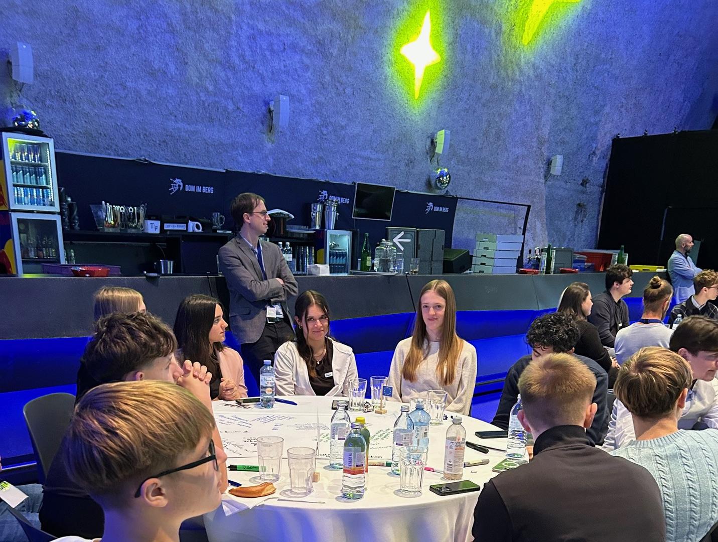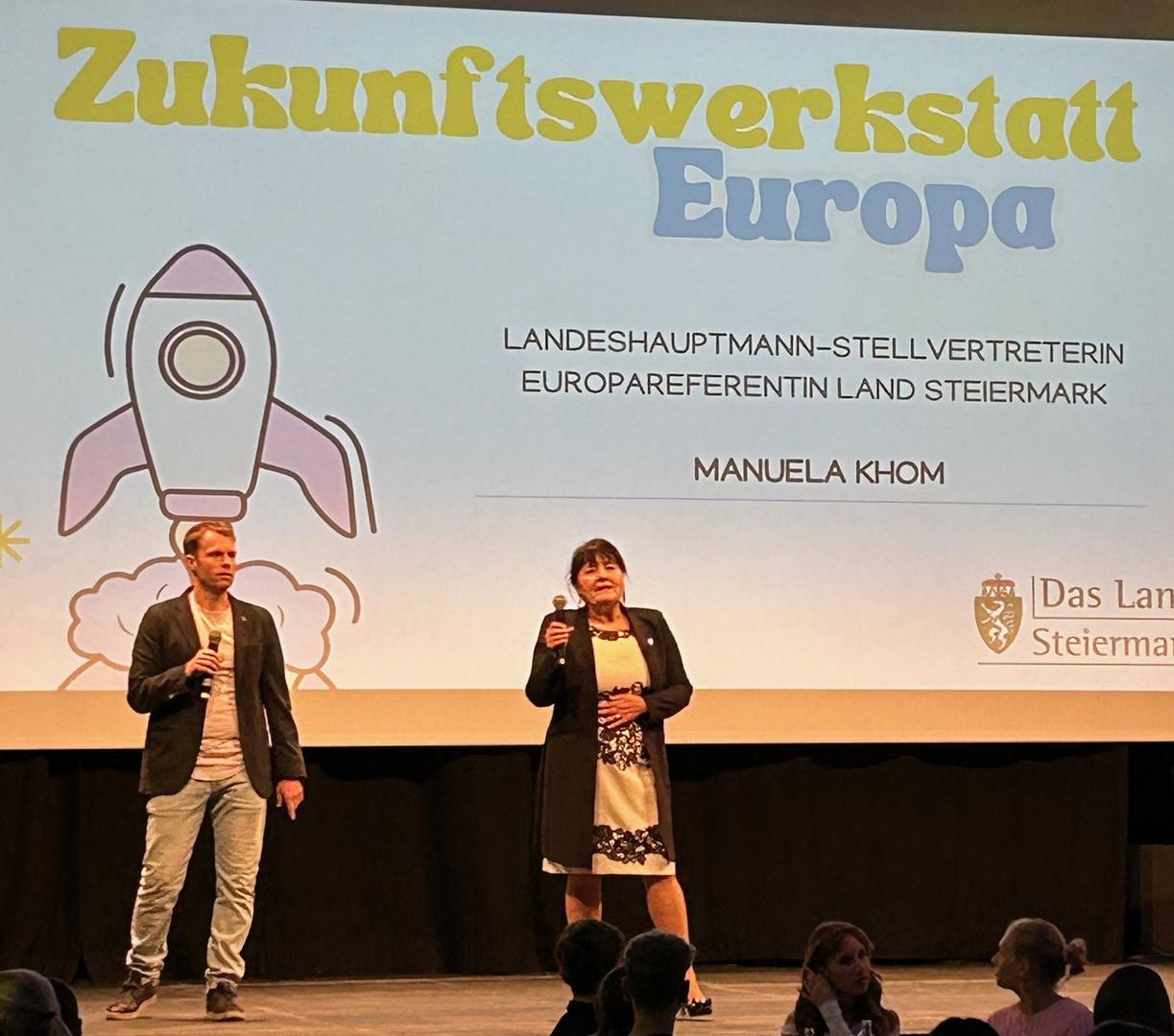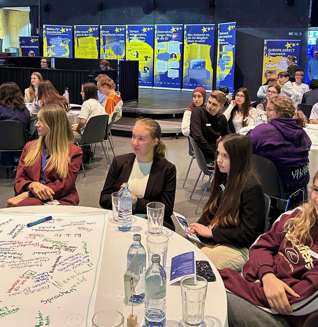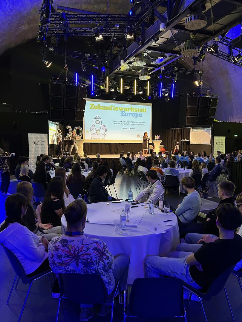 Im Dom am Berg in Graz hatten sie mit rund 100 anderen Schüler*innen aus 23 steirischen Botschafterschulen die Gelegenheit, mit Expertinnen und Experten über die Rolle der Steiermark in Europa und der Welt, den Mehrwert eines vereinten Europas und über Themen wie Digitalisierung, globale Verantwortung, Green Deal und Förderung globaler Projekte zu debattieren.