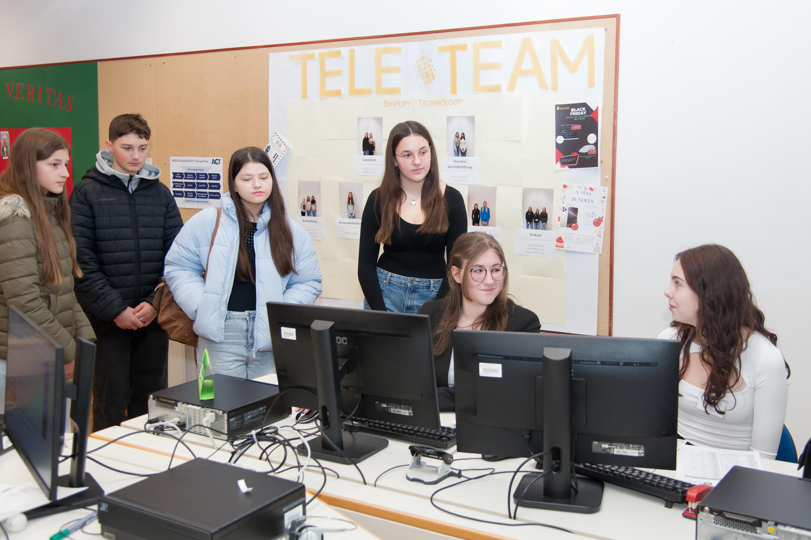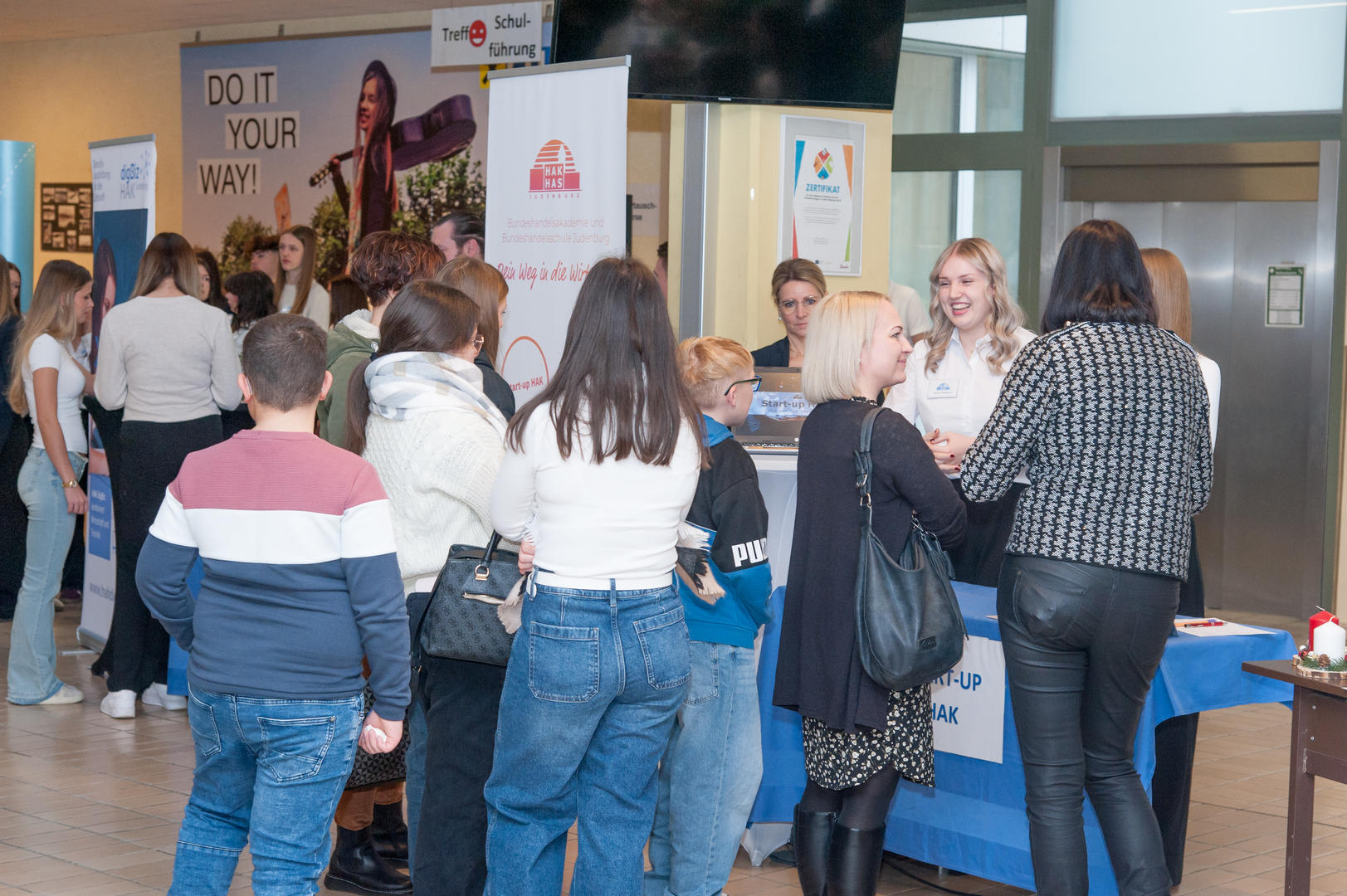 Schülerinnen und Schüler, Eltern sowie weitere Interessierte nutzten die Gelegenheit, die Schule kennenzulernen und sich persönlich beraten zu lassen. In geführten Rundgängen präsentierten engagierte Schüler*innen gemeinsam mit Lehrpersonen die unterschiedlichen Ausbildungsschwerpunkte der Handelsakademie und der Handelsschule. Dabei wurden praxisnahe Projekte, moderne Unterrichtsmethoden und digitale Lernangebote vorgestellt.