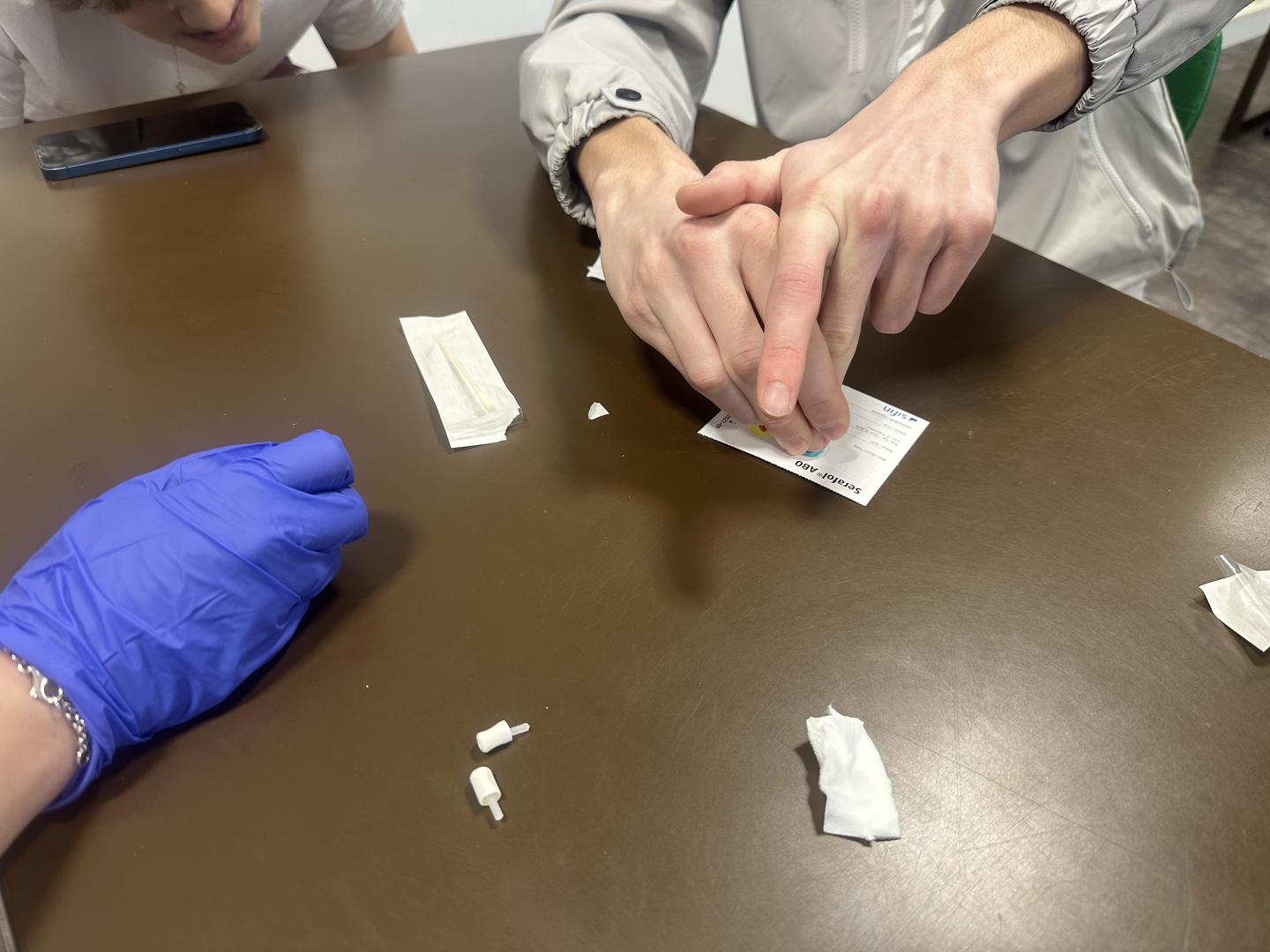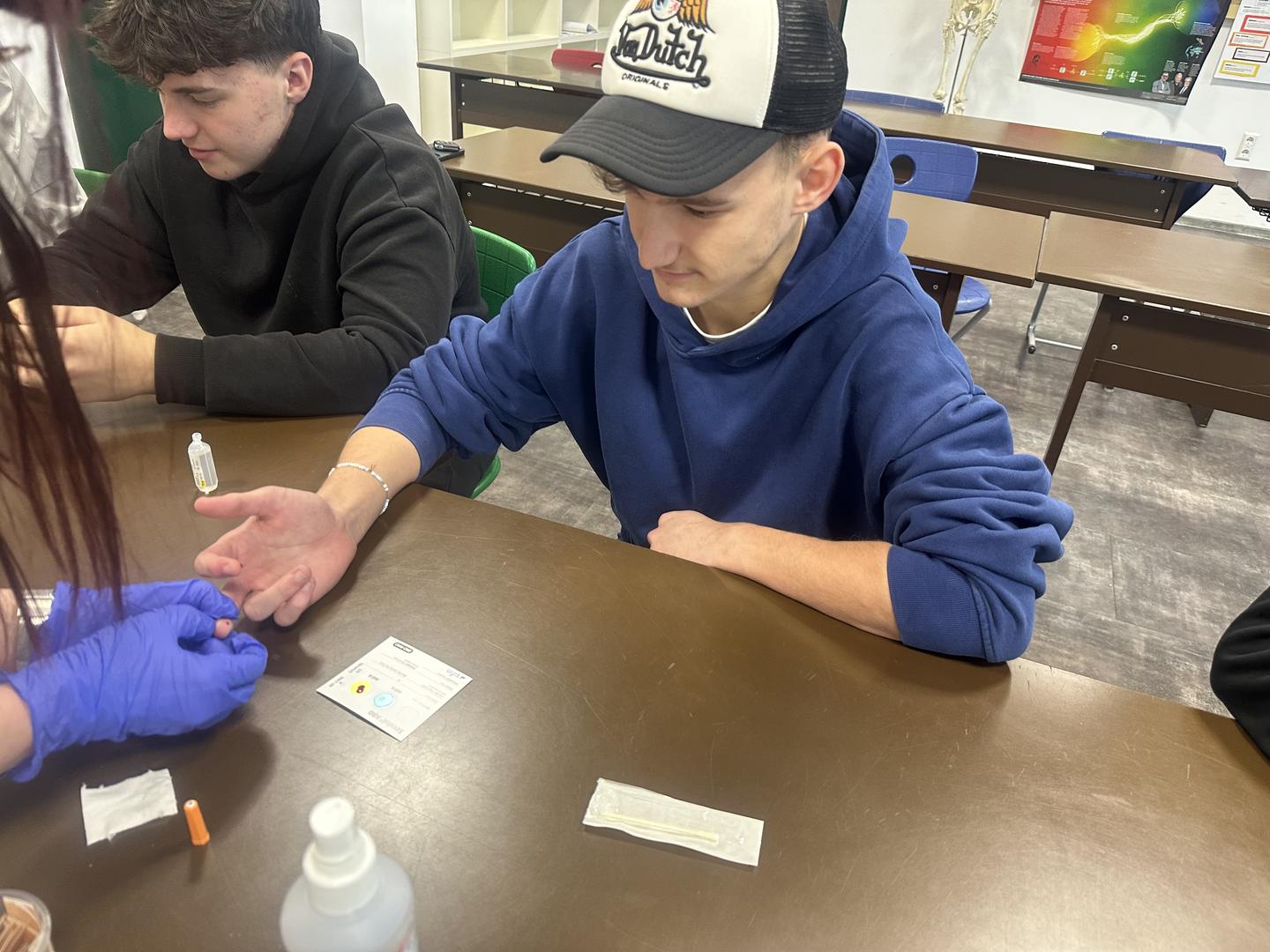 Zu Beginn wurde gemeinsam die theoretische Grundlage der Blutgruppen erarbeitet. Anschließend konnten die Schülerinnen und Schüler unter ärztlicher Anleitung mithilfe eines Diabetes-Stechers einen kleinen Tropfen Blut entnehmen und diesen auswerten. So wurde der Unterricht nicht nur anschaulich, sondern auch wissenschaftlich korrekt und sicher durchgeführt.